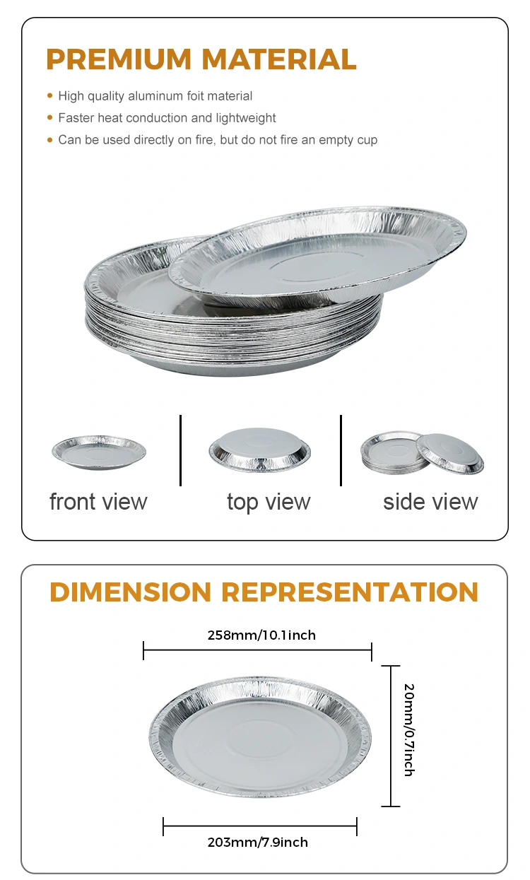 A Yunchu alumínium fólia 10 hüvelykes pizza serpenyő ezüst alumínium fólia -tartályokat kínál, amelyek száma 13110. Körülbelül 695 ml (kb. 24,5 uncia) kapacitással alkalmas pizza sütésére, ragaszkodás nélkül, könnyen felszabadítható a penészből, és nincs szaga. Ezenkívül a megemelt él kialakítása megakadályozza az összetevőket a kiömlést és növeli a praktikusságot. Biztosíthatunk logó testreszabási szolgáltatásokat is, amelyek segítenek az ügyfelek benyomásának elmélyítésében és a márka tudatosságának javításában.