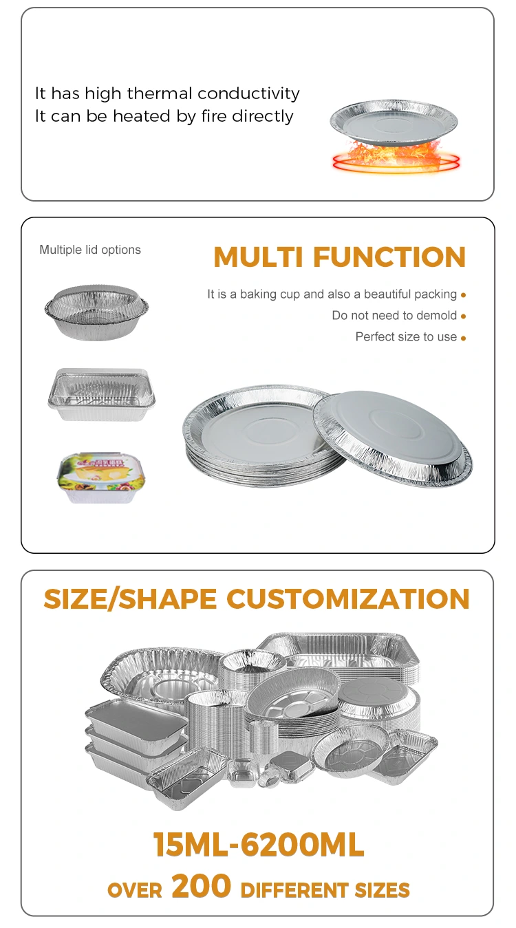 A Yunchu alumínium fólia -ellátó gyár által biztosított 13110 -es 10 hüvelykes pizza serpenyő ezüst alumínium fólia -tartály kiváló minőségű ezüst alumínium fólia anyagból készül, amely divatos és elegáns megjelenésű és jó hőszigetelési teljesítményű. A Pizza Pan nagy kapacitása lehetővé teszi, hogy könnyen tartson különféle ételeket, legyen az főétel családi étkezéshez vagy több fogásos kombinációhoz. Rengeteg tárolóhely van tele, tehát nem kell aggódnia, hogy elfogy az étel, akár családi összejövetel, akár elvihető.