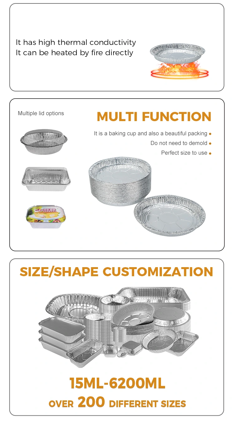 A családi összejövetelekben a 7-9 hüvelykes pizza serpenyő ezüst alumínium fólia-tartály kétségtelenül nélkülözhetetlen segítő. Használható olyan főételek, mint a sült csirke és a pörkölt, vagy eldobható asztalként, a maradék ételek tartásához, amely kényelmes és gyors, csökkentve az étkezés utáni tisztítás terheit. Ezenkívül könnyű és könnyű hordozhatósága miatt ideális kültéri piknikekhez.