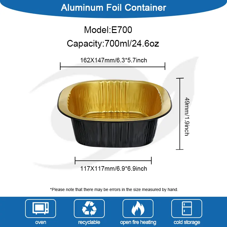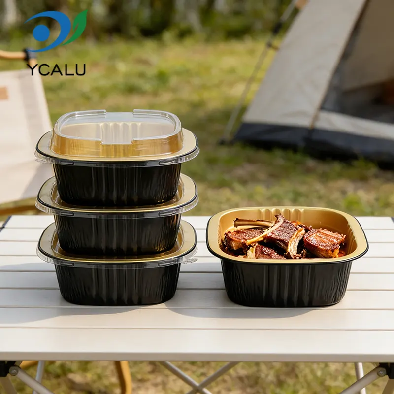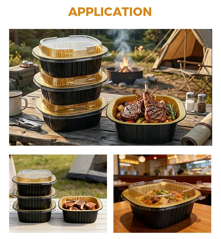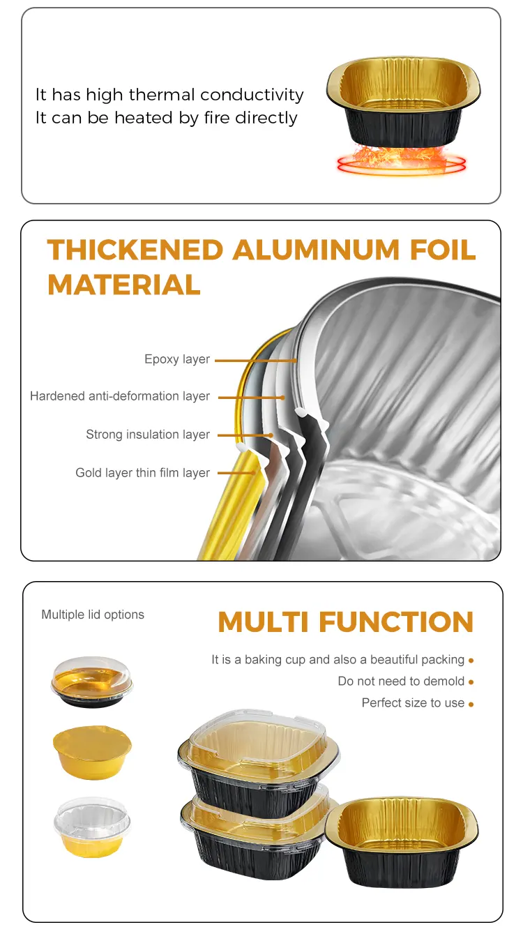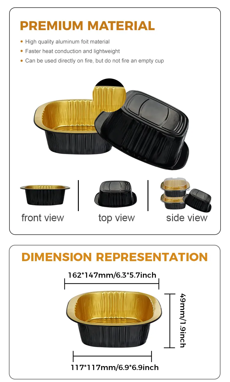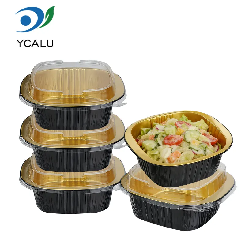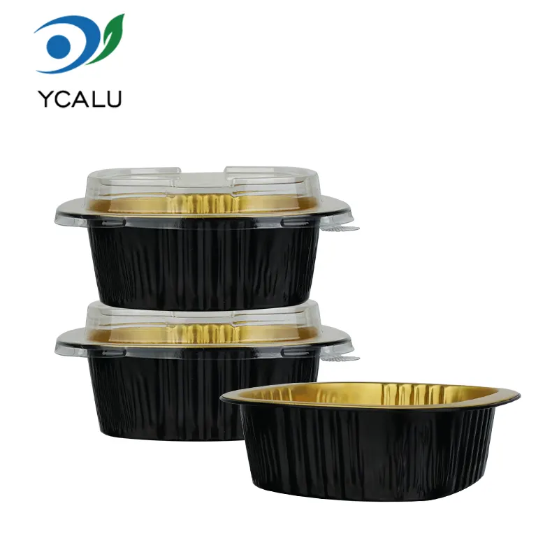 Eldobható binaurális négyzetdobozos fekete arany alumínium fólia tartályok