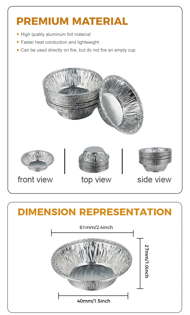 Yunchu alumínium fólia eldobható tojásos tortatálca ezüst alumínium fólia tartály élelmiszer-minőségű sűrített alumíniumfóliából készült, és több biztonsági teszten is átesett. Nincs szaga és káros maradványai, így biztonságosabb a közvetlen érintkezés az élelmiszerekkel. Az egyedi vastagított kialakítás kiváló tartást és kiváló magas hőmérsékleti ellenállást biztosít a terméknek. Akár sütőben magas hőmérsékleten, akár légsütőben precízen melegítjük, nem deformálódik könnyen és nem szivárog, így a tojástorta teljesen megszilárdul, a széle pedig ropogós lesz, és nem esik össze. Ugyanakkor az alumíniumfólia anyaga egyenletesen vezeti a hőt, így a kívülről egyenletesebben melegszik fel a tojástortákat, így elkerülhető, hogy kívülről megégjenek és könnyen megsüljenek a professzionálisan nyers tojástorták. belülről.