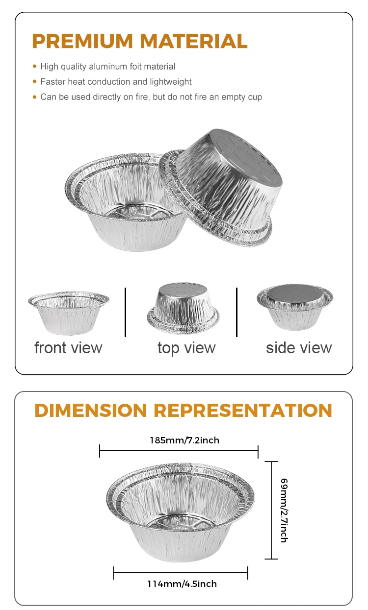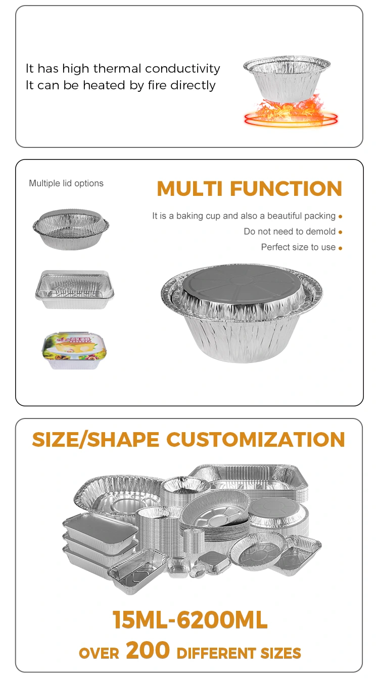 A Yunchu alumínium fólia eldobható gratin -elvihető ezüst fóliatartály egyedi kialakítású, könnyű és könnyen használható, csak 9,9 gramm súlyú, megkönnyítve a rakás és a tárolást, a helyet és az elhelyezési időt megtakarítva. A terméket egy fejlett, könnyű fali eljárás felhasználásával gyártják, sima és sík felületű, így ideális a címkézéshez és a szkennelési munkákhoz az élelmiszer -feldolgozás után a nagy szupermarketekben. Tágas kapacitása elegendő ahhoz, hogy különféle napi ételeket és harapnivalókat tároljon, kielégítve a különféle felhasználási igényeket. Eldobható termékként nem kell megtisztítani, jelentősen csökkentve a munkaerőköltségeket. Ezenkívül a terméket alumíniumfólia -háziállat fedéllel és alumínium fólia -hő tömítőfóliával van felszerelve, amely kiváló olajszivárgással és vízálló teljesítménygel rendelkezik, és magas hőmérsékleten fenntarthatja a stabilitást és a deformációt, ezáltal javítva az ételek frissességét és hőmegőrzési hatását, különösen lezárás és szállítás esetén.