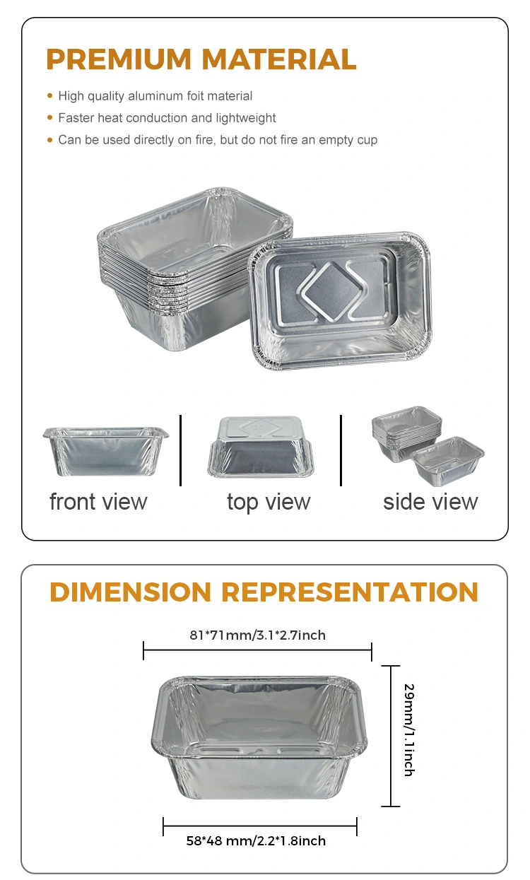 A Yunchu alumíniumfólia gyártó eldobható téglalap alakú sütő levegős sütő ezüst alumínium fólia tartálya alkalmas napi háztartási sütésre, levegős sütésre, szabadtéri kempingezésre és vacsorapartikra, és megőrzi az alumíniumfólia tartályok magas hőmérsékleti ellenállását.