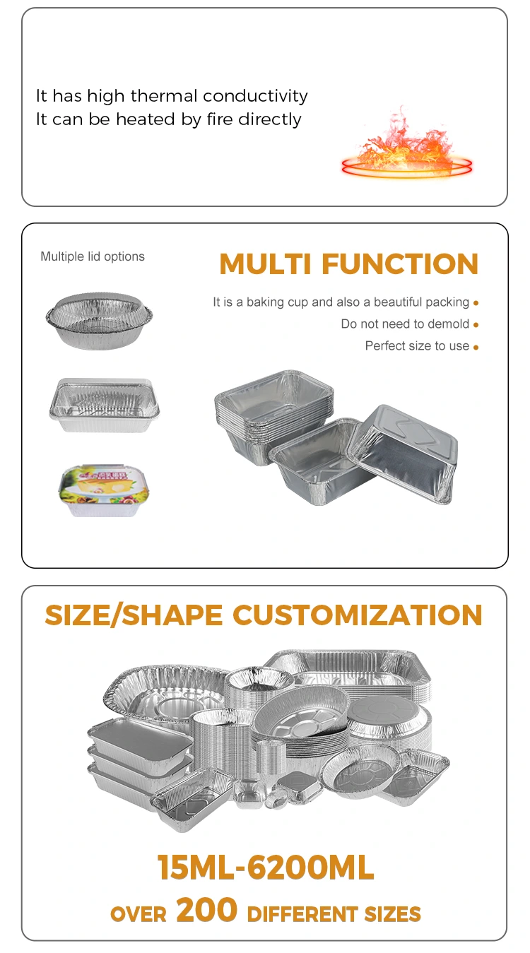 A Yunchu alufólia gyártó eldobható négyszögletes sütőlégsütő ezüst alufóliás tartályát konyhai, sütési és kényelmes vendéglátási igényekhez tervezték. Élelmiszer-minőségű alumíniumfóliát használ nyersanyagként, és precíziós bélyegzést kapott a biztonság, a praktikum és a környezetvédelem érdekében. Teljesen megoldja a fárasztó sütés utáni tisztítás, az edények rossz alkalmazkodóképessége és az összetevők szaga okozta fájdalmat, így minden étkezés egyszerű, gondtalan, tiszta és hatékony lesz. Az eldobható téglalap alakú sütő levegős sütő ezüst alumínium fólia tartály bizonyos hővezető képességgel rendelkezik, egyenletesen és gyorsan vezeti a hőt, és pontosan tud alkalmazkodni a légsütő magas hőmérsékletű környezetéhez. Szélsőséges hőmérsékletnek is ellenáll -20°C és 250°C között.