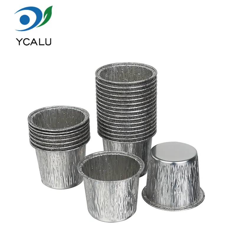 • Eldobható kerek tortapohár Ezüst alumíniumfóliás ételtartókEldobható kerek tortapohár Ezüst alumíniumfóliás ételtartók