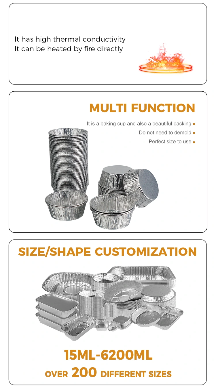 A Yunchu alumíniumfólia szállítójának eldobható kerek szósza Air Fryer ezüst alumíniumfólia tartály Az ezüst alumíniumfólia vastag textúrájú, és nem sérülhet vagy deformálódik könnyen. Még ha sűrű szószokat és leveses összetevőket is tartalmaz, szivárgás vagy összeesés nélkül szilárdan megtartható. A széleit megerősítették és préselték, így tapintása sima, nem karcolja meg a kezét, és biztonságosabb a kezelésük. Eldobható kialakítás, használat után dobja ki, így megkímélheti a tartály tisztításának fáradságát. Nemcsak a hatékonyságot javíthatja, hanem a környezetet is tisztán és rendben tarthatja olyan esetekben, mint például az elvitelre való csomagolás, a vendéglátó üzletek, a kempingezés és a piknikek. Sőt, az alumíniumfólia anyaga újrahasznosítható, zöld és környezetbarát, és a kényelem és a környezetvédelmi szempontok figyelembevételével nem okoz túl nagy környezetterhelést, ha használat után kidobjuk.