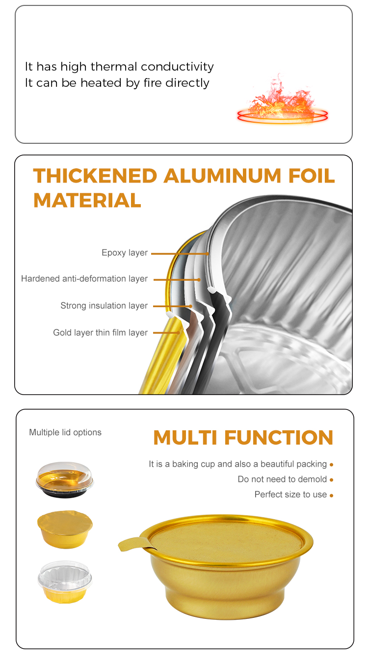 Kényelmes és hordozható: Eldobható kerek elvihető doboz A kis arany tál alumínium fólia tartályok könnyűek és könnyen hordozhatók a bőröndben vagy a táskájában.