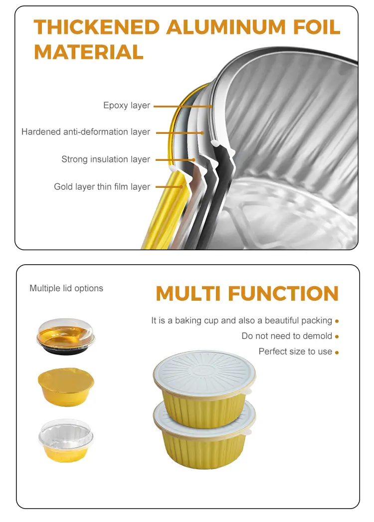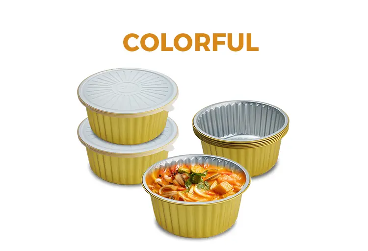• Eldobható lezárható arany kerek alumínium fólia tartályokEldobható lezárható arany kerek alumínium fólia tartályok