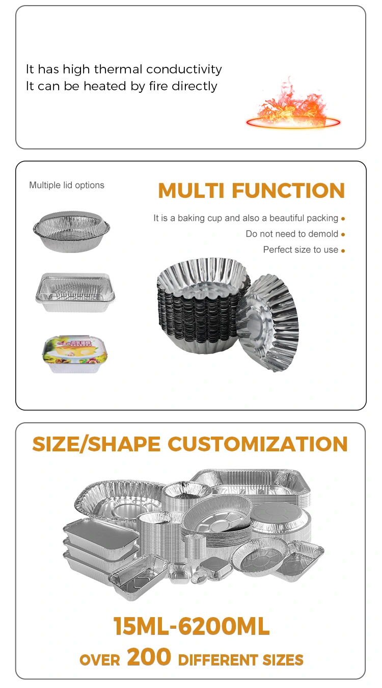 Yunchu alumínium fólia tojás torta pirítós Ezüst alumínium fólia -élelmiszer -tartály, akár házi készítésű, akár kereskedelemben előállítják, a különböző igények kielégítése érdekében. Környezetbarát, biztonságos anyag és sokoldalú kialakítása ideális választássá teszi a rajongók sütését.