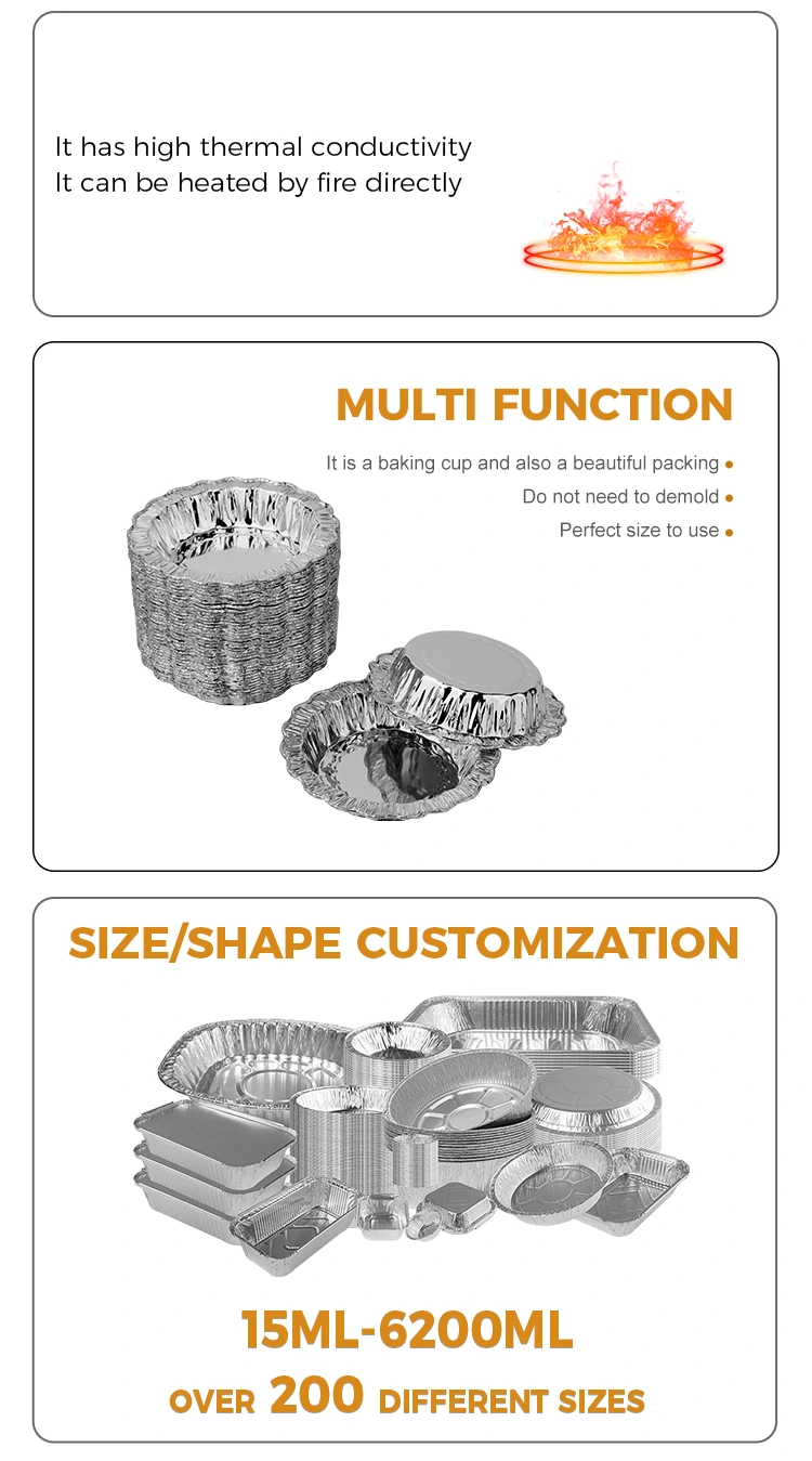 A Yunchu alumínium fólia csipkével kerek süteményt sütemény, ezüst alumínium fólia -tartályok sokoldalúak a sütéshez és a gőzöléséhez. Több felhasználásra tervezték, sütemények, tál sütemények és egyéb egyéb finomságok készítésére. Eldobható, nincs szükség tisztításra, és képes ellenállni a magas hőmérsékleteknek -30 ℃ -től 250 ℃ -től, nem égni vagy törni. Vastag, kiváló minőségű, élelmiszer-minőségű és környezetbarát anyagokból készülve biztonságosabb a káros anyagok nélkül. Ellenáll a károsodásnak, erős és tartósnak, erős szakítószilárdsággal és jó meghosszabbítással, míg a szélek simaak, hogy elkerüljék a vágásokat. Különböző specifikációk állnak rendelkezésre a különféle sütési igények kielégítésére.