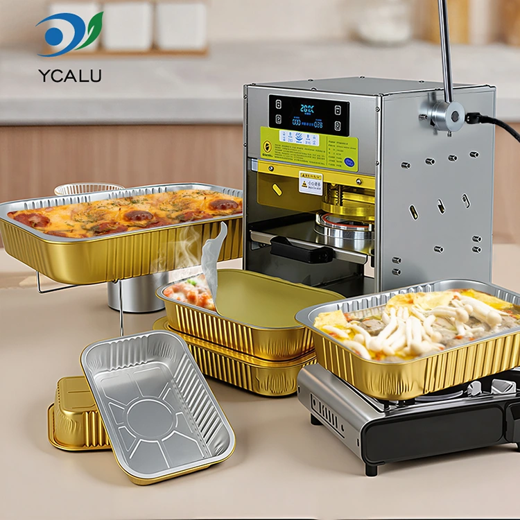 A Yunchu az alumíniumfólia tartályok professzionális gyártója és szállítója Kínában. Az arany alumíniumfólia tartályokkal ellátott kézi hőszigetelő gépünk kettős előnnyel rendelkezik: megjelenési szint és szilárdság. Az elviteles étkeztetés, a csoportos ételek kiszállítása és a készételek iparának kedvelt kombinációja lett. Nemcsak a márka minőségét emelheti ki, hanem megoldja a csomagolás fájdalmát, csökkenti a költségeket és növeli a hatékonyságot a kereskedők számára, valamint megnyugtató élményt nyújt a fogyasztóknak.