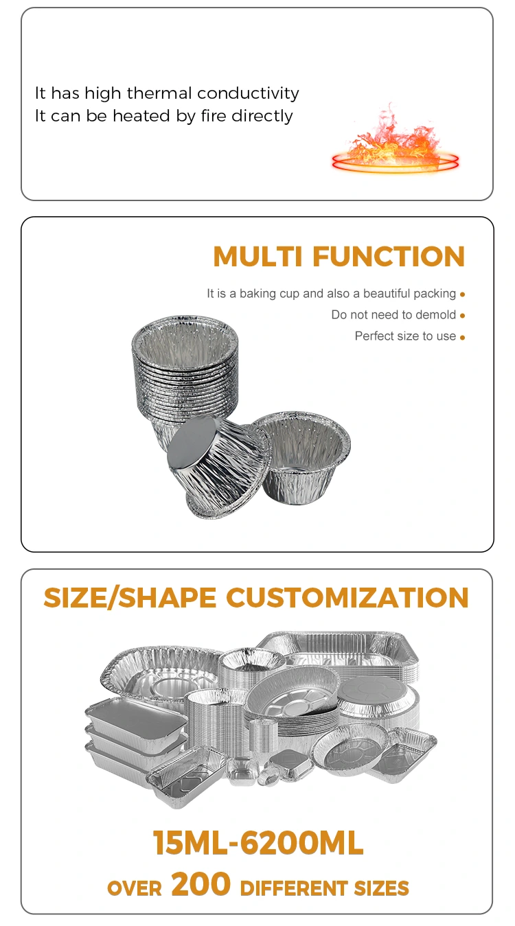 A Yunchu alumíniumfólia gyártó egyszeri kis kerek süteménysütő ezüst alumínium fólia tartálya ezüst kerek megjelenésű. A sült desszertek edényét nem kell cserélni. Közvetlenül az asztalra tálalható és díszdobozokba tehető, legyen szó családi vacsoráról, kempingpiknikről vagy magánsütésről.