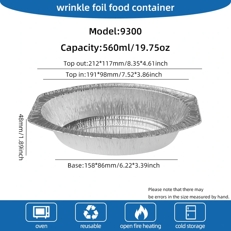 A Yunchu alumínium fólia ovális sült kenyér ezüst alumínium fólia -tartályok közvetlenül a sütőben vagy a grillben használhatók, ami nagyon kényelmes. Mindössze 5,9 gramm súlyú, könnyű rakni, hatékonyan megtakarítva a szállítást, az étterem bevonását és a konyhát. A termék könnyű fali folyamata sima és rendezettvé teszi a felületet, és az ezüst fényes megjelenés nem csak gyönyörű és elegáns, hanem kényelmes a nagy szupermarketek számára a kódok címkézéséhez és beolvasásához.