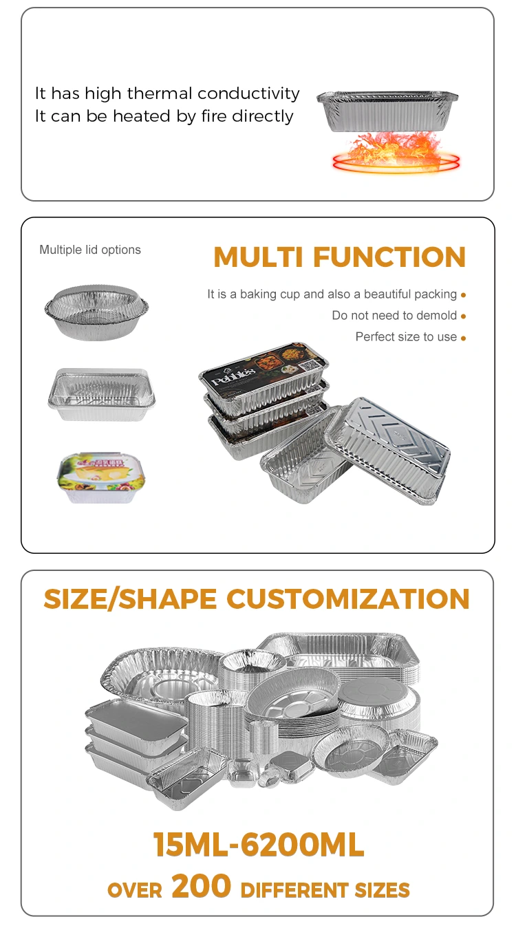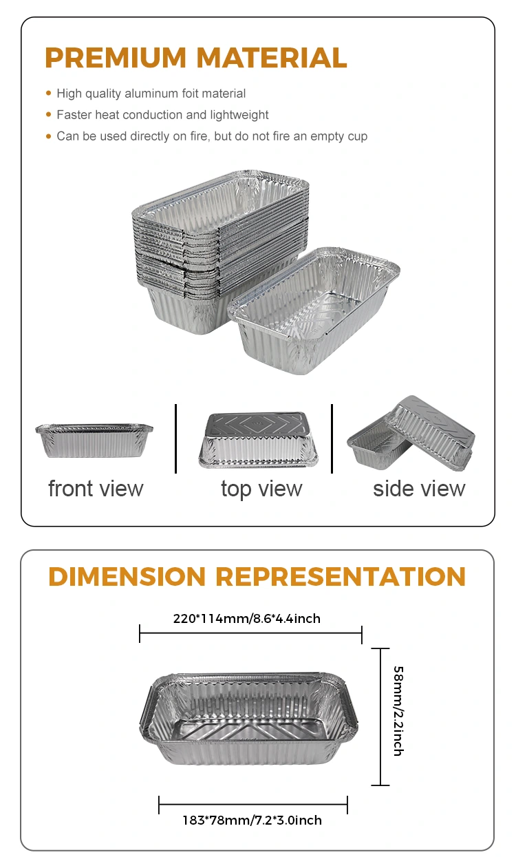 A Yunchu alumínium fólia -szállító, téglalap alakú grillezett, megvastagodott ezüst alumínium fólia -tartályok, jó segítő a grillhez, a forró edényhez, a sütéshez, Az alkalmazások, a hő- és olajállóság, a könnyű sütés, a kültéri grill, az ideiglenes tálak nem félnek a tűztől, ha használják, ételt vagy levest kell elhelyezniük, nem száradnak víz nélkül, a háztartási sütők tisztaak és kényelmesek az edények ártalmatlanításához.