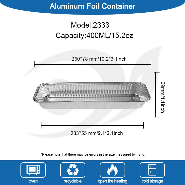A Yunchu alumínium fólia -beszállítója téglalap alakú kenyérsütő ezüst alumínium fóliafólia -tartályok, amelyeket kifejezetten kenyér sütéshez használnak, ónfólia tálként is használhatók, kenyér, sütés, pirítós, sütött rizs és egyéb ételekhez. Ennek a tartálynak széles körű felhasználása van, élelmiszer-minőségű, megvastagodott alumínium fólia anyaggal, tartós és nem könnyű megtörni, élelmiszer-érintkezési anyagokat használhat sütőkben, grillrácsokban, lég sütőben és egyéb berendezésekben. Az élelmiszer-minőségű anyagok könnyen tisztíthatók, közvetlenül az élelmiszerekkel érintkezve használhatók, egy használat után eldobhatók, és nem könnyű átnézni az alsó részét, az egyszerű domborító, a kiváló minőségű összetevőket egyenletesen melegíthetik, közvetlenül megsemmisíthetők, nem könnyű az alsó részét megsebesíteni. Támogassa az alumínium fólia kombinációjának nagykereskedelmi megrendelését, és a minták nyomtatási testreszabási szolgáltatásait nyújthatja egyetlen 1000 darab MOQ -val. Ez a téglalap alakú barbecue ezüst alumíniumfólia -tartály különféle specifikációkat és modelleket kínál, amelyek közül szükség esetén választhat, kérjük, vegye fel a kapcsolatot az értékesítési személyzettel a konzultációhoz.
