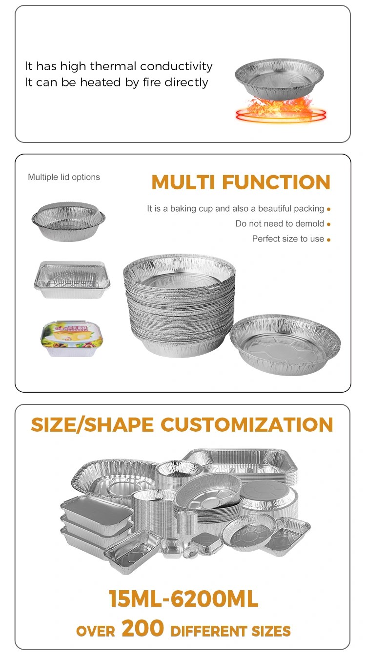 Yunchu alumínium fólia -szállítói gyártás nagykereskedelmi kerek levegő sütő sütő ezüst alumínium fóliafájltartályok Tervezze meg finom, könnyű és praktikus, a súly kb. Rendelkezésre álló különféle méreteket lehet választani, a magas hőmérsékletű sütésnek nincs sajátos illata, nagyon alkalmas nagy szupermarketekre az élelmiszer -feldolgozás utáni címkézéshez és szkenneléshez, kapacitása tágas, elegendő ahhoz, hogy mindenféle napi ételt és snacket tartson, hogy megfeleljen a különféle felhasználás igényeinek. Eldobható termékként nem kell megtisztítani, jelentősen csökkentve a munkaerőköltségeket. Ezenkívül a terméket alumínium fóliával ellátott kisállat fedéllel és alumínium fóliapapír fedéllel látják el, amely kiváló olajszivárgással és vízálló teljesítményű, és stabil maradhat, és nem deformálódhat magas hőmérsékleten, ezáltal javítva az élelmiszerek frissességét és a hőmegőrzési hatást, az alumínium fólia -követő fedezetet, és javíthatja a termék felismerését és a termék felismerését, és a termék felismerését javíthatja, és javíthatja a termék felismerését és a termék felismerését, és a termék felismerését javíthatja. Élelmiszer -kapcsolattartási szabványok az élelmiszerbiztonság és a minőség biztosítása érdekében.