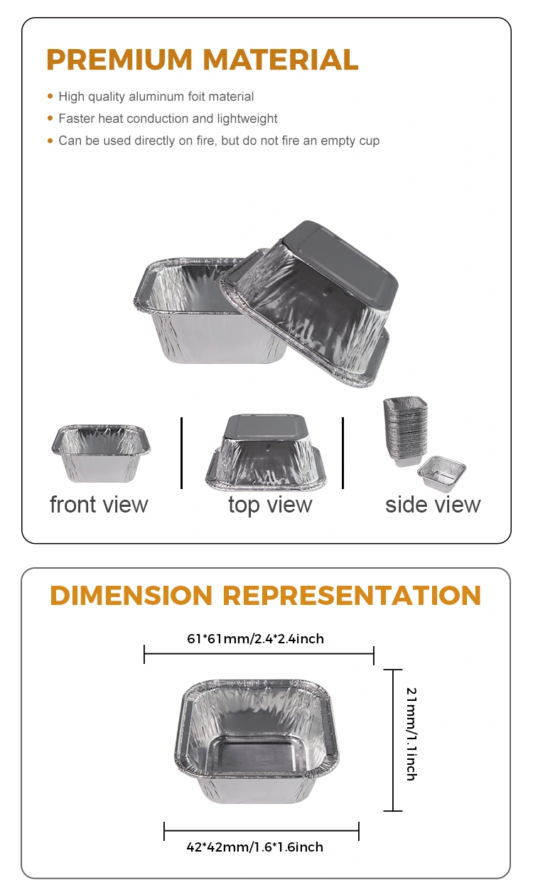 Yunchu alumínium fólia -beszállító négyzet alakú lég sütő ezüst alumínium fólia tartályok vendéglátásban, otthoni sütő előállításában, elvihető szállítással, svédasztalos szószokkal, bankettekkel és más helyekkel, de párolt tojásokhoz, csokoládéhoz, kekszekhez, kis tortákhoz, mártásokhoz és egyéb tartományokhoz is felhasználható, bármilyen kekszet felhasználhatók, akár a Bakenes, akár a Bake Az alumínium fólia -poharak elhelyezhetők, miközben pontokat adnak az edényekhez, de moshatók és teher nélkül is felhasználhatók.